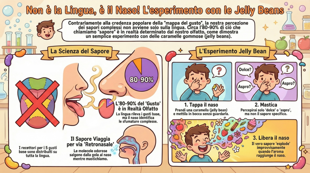 - Prendi una jelly bean e mettila in bocca tenendo il naso chiuso